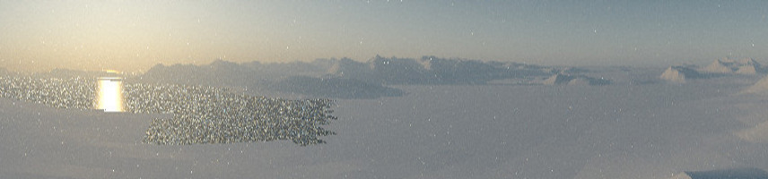 Unser Beitrag zur Jahreszeit: Oben: Webcam-Bild vom verschneiten Ny Aalesund auf Spitzbergen (Häusersammlung in der Bildmitte). Unten: Die entsprechende Strahlungssimulation derselben Szene. Wissenschaftlicher Hintergrund dieser Simulation ist die Rekonstruktion von tatsächlich durchgeführten Messungen der solaren Einstrahlung in der Nähe. Der Vergleich demonstriert eindrucksvoll mittels der sichtbaren Farben, dass diese Rekonstruktion erfolgreich war und das Verständnis für Einflussfaktoren wie die Aerosolsituation, Topographie, Eis- und Schneebedeckung korrekt ist.