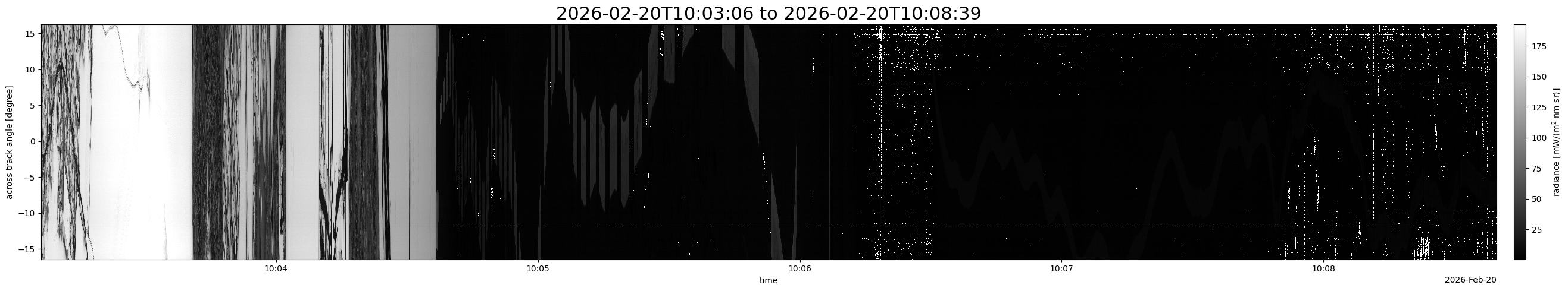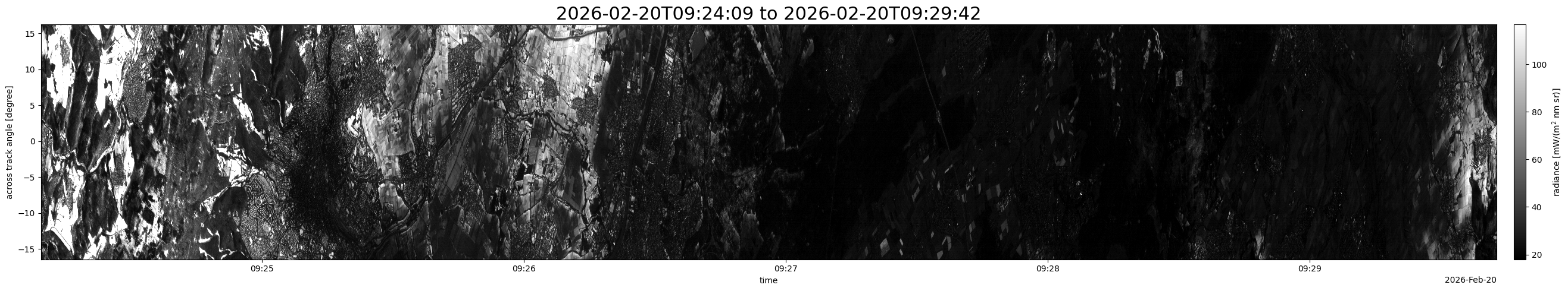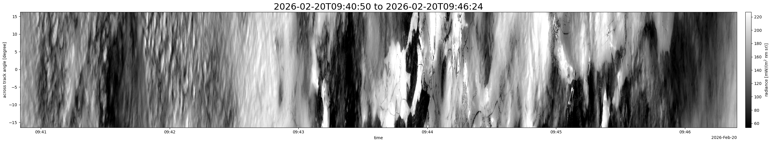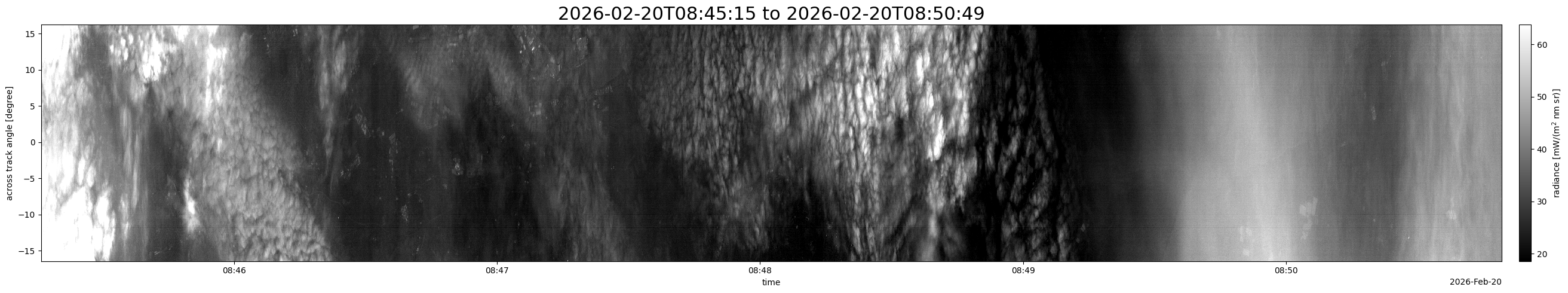 Note that due to the scanning nature of the sensor, the across-track axis is angular resolved while the along-track axis (time-axis) is linear along the flight track.