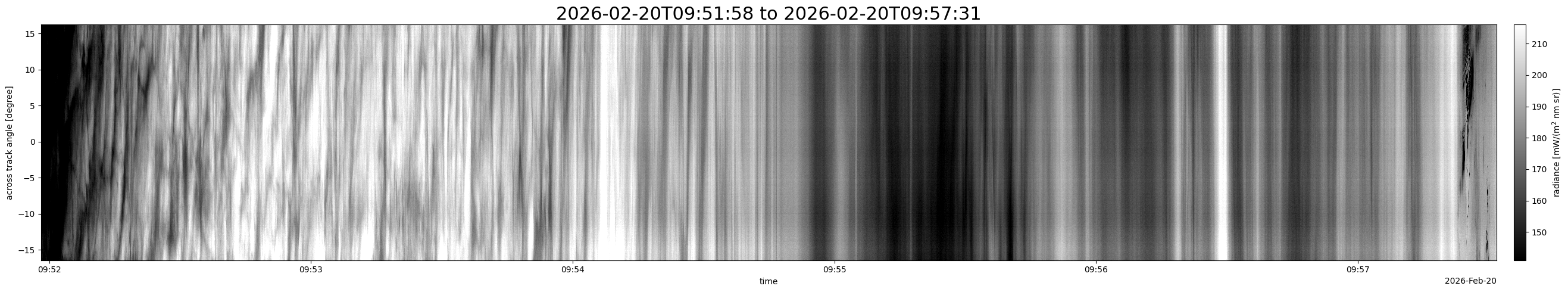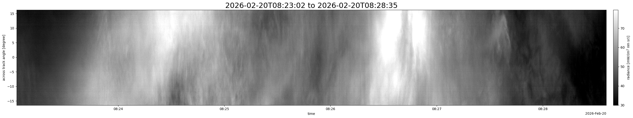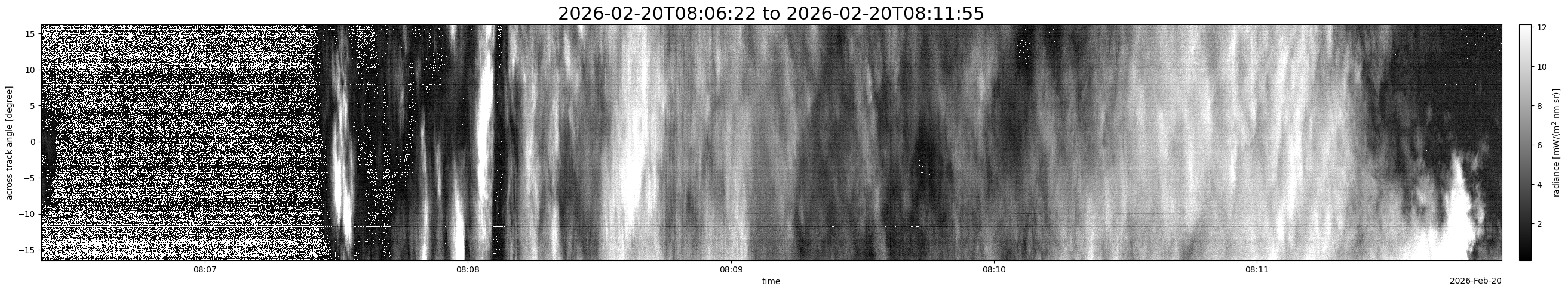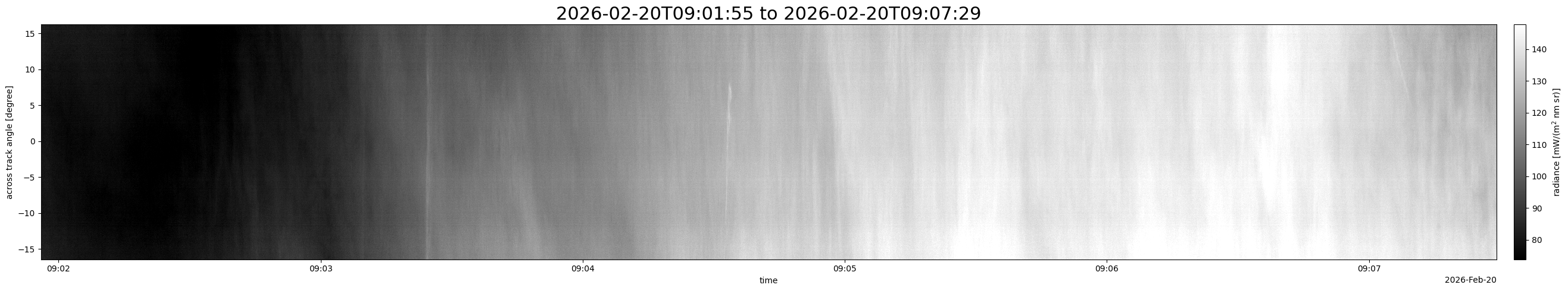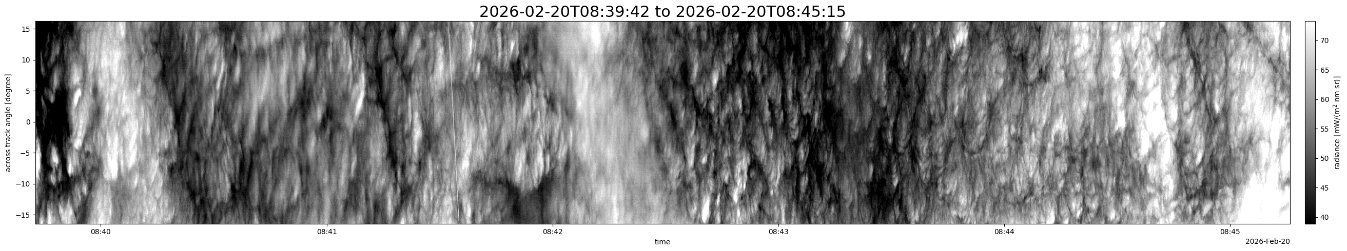 Note that due to the scanning nature of the sensor, the across-track axis is angular resolved while the along-track axis (time-axis) is linear along the flight track.